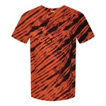 Dyenomite Adult 5.3 Ounce Tiger Stripes T-Shirt. Take a walk on the wild side in a jungle-inspired t-shirt that unleashes the animal within! Preshrunk, 100% cotton, 5.3 ounce Double-needle stitched neckline and bottom hem.